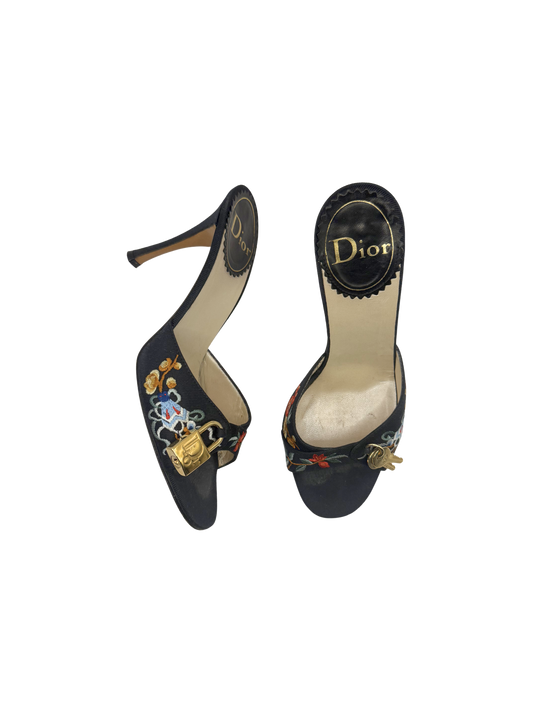 Dior Embroidered Lock and Key Heels, IT 36.5